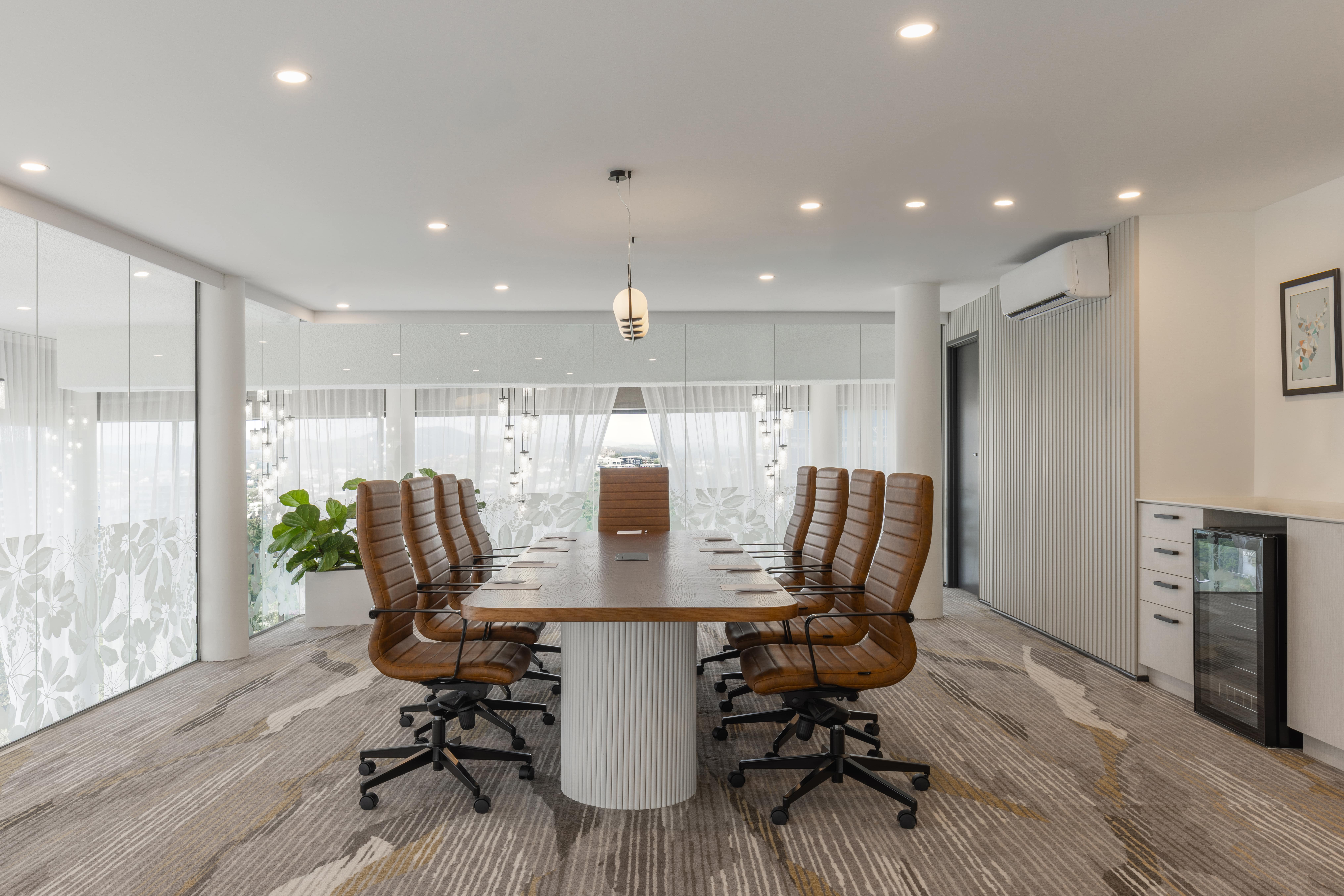 Elevated above the city, the Sky Boardroom offers an intimate and refined setting for high-level meetings, private lunches, and elegant dinners.  Framed by stunning views across Brisbane, this sophisticated space creates a sense of focus, privacy, and exclusivity.